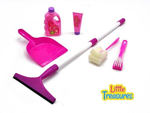 The game involves pretend play toy parts that simulate the experience, broom, brusher, soap bottle, dust pan, viper and cleaner tools for kids of age 3 and plus. The toy set engages singular color usage - catching purple with soft, baby textures and combination with white for all tools and toy parts. The game involves many kinds of stories to it with simulating toy parts that indulge the little ones in a creative, pretend play which is extremely realistic to the fantasy-oriented minds. The kids learn the usage of several elements, obtain the gist of utilization and learn the roles of the toy parts that they shall use in their later life, at some point. Festively colored parts and unique features add immense fun and creative play to the game. Real, appealing colors and tones attract the little ones extensively, allowing them to indulge in the toy game of fun, pretend play. The toy parts are manufactured with top quality materials and components, which are non-easily broken or dented. Strong, durable and excellent quality, along with being waterproof invites usage of all kinds, rash, anxious treatment of eager kids is perfectly compatible with the toy parts. This realistic game set for kids allows a creative learning outcome in the most entertaining manner imaginable. It teaches pretend play of tools and elements that are occupied in everyday life, inculcating within the preschoolers a game discipline that can be implemented in later life. The toy beautifully packaged in a toy box.